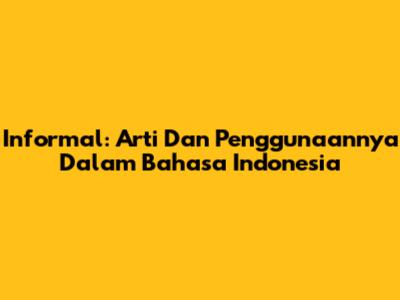 Informal: Arti Dan Penggunaannya Dalam Bahasa Indonesia